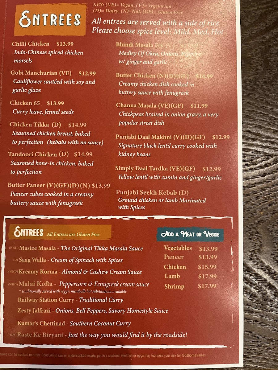 Mixed veggies cooked in a light cream sauce, blend of spices and cashews.
